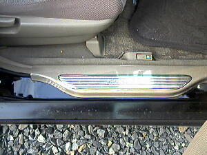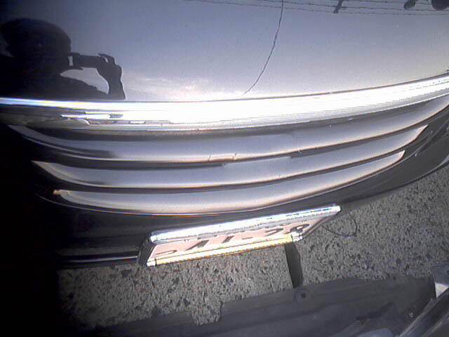 | この加工は、かなりお薦め。施工は簡単、キッキングプレートを外し、枠に沿って型紙で型どりし、厚さ0.03mmくらいのステンレステープをその型に切り抜き、張り付けた後、凹凸に沿ってへらなどでしごいて、ODYSSEYの文字やその脇の線を出す、そして枠の切り口に沿ってピンテープを貼り、その上からビニールシートで覆いカバーする。ちょっとした高級感も醸し出すことが出来る。 | ノーマルグリルを切った貼ったの完全DIY 制作費は塗装も入れて3000円ほどのお手軽施工 ぱっとみ全然違和感ないんでよしとするか 結局は↓のグリルに変更 だって加工部分にヒビが入ってきたんだもん(爆) |