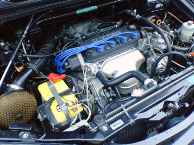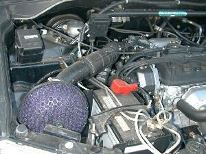 | 手前の紫色の毒キノコが、HKSパワーフロー。奥のブラックボックスがホーネット パワーフローの吸気音は控えめ、もうちょっと大きい方がいいよな ホーネットの取り付けポイントは、ある程度衝撃も拾え、水も掛からないので無難だと思うエアクリーナー取り付け穴使用 |