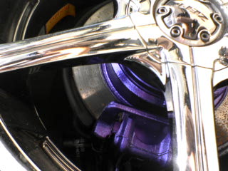 スポーティーホイールと言えば、軽量化のため細いスポーク しかし、このホイールはブライトクロームメッキだからどのスタイルにも似合うかな?納得の一品 バネ下軽量化にも貢献 ただし、凝った複雑な造形のため、かなり洗いにくい (特にリム) |