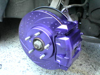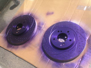 | 10 | そしてこれが、走って当たり面を出したの図 塗膜のカスがパッドとローターにかんで、めんどくさいことになる事を心配していたが、皆無だった ディンプル・スリット部もパープルに塗れたし、結果オーライだろう |