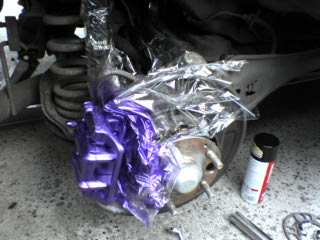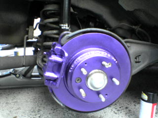 耐熱塗料メタリックパープル これもヤフオクで入手、通常キャリパー塗装なんて言うと5000円近くする塗料を使われる方が多い中、これは希望落札価格880円の代物 しかも、この商品店頭では色に限りがあり、4000円くらいで販売している様子 こちらの出品者さんは、メタリックレッド・メタリックブルー・ゴールド・ポリッシュホワイト・メタリックシルバー・メタリックパープル・ポリッシュブルー・ポリッシュブラックなど様々な色を選べる、 欲しい方はこちらを |
